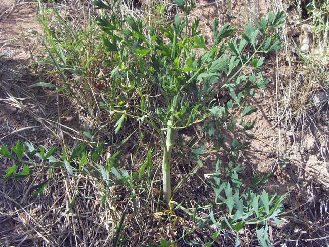 多年生草本,高30-80厘米。根粗壮,细长圆柱形,分歧,淡黄棕色。根头处被有纤维状叶残基及明显的环纹。茎单生,自基部分枝较多,斜上升,与主茎近于等长,有细棱,基生叶丛生,有扁长的叶柄,基部有宽叶鞘。 叶片卵形或长圆形,长14-35厘米,宽6-8 (-18) 厘米,二回或近于三回羽状分裂,第一回裂片卵形或长圆形,有柄,长5-8厘米,第二回裂片下部具短柄,末回裂片狭楔形,长2.5-5厘米,宽1-2.5厘 米。茎生叶与基生叶相似,但较小,顶生叶简化,有宽叶鞘。复伞形花序多数,生于茎和分枝,顶端花序梗长2-5厘米;伞辐5-7,长3-5厘米,无毛;小伞形花序有花4-10;无总苞片;小总苞片4-6,线形或披针形,先端长,长约3毫米,萼齿短三角形;花瓣倒卵形,白色,长约1.5毫米,无毛,先端微凹,具内折小舌片。双悬果狭圆形或椭圆形,长4-5毫米,宽2-3毫米,幼时有疣状突起,成熟时渐平滑;每棱槽内通常有油管1,合生面油管2;胚乳腹面平坦。花期8-9月,果期9-10月。